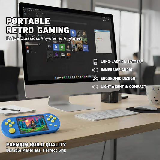 16-Bit Handheld Game Console - 3 Inch HD Screen 300-in-1 Retro Games - Portable Classic Video Game Player for Kids & Adults, Include Protective Carrying Case (Blue)