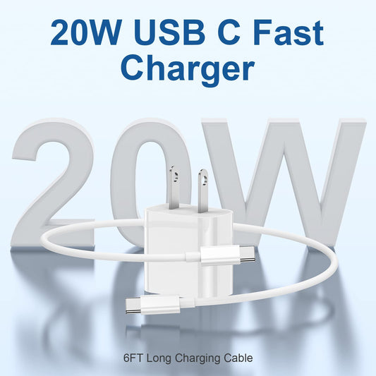 iPhone 17 16 15 Charger and 10ft Type C to C Cable Cord Long, 20W USB C Fast Wall Charging Block Plug Power Adapter Cube Brick for Apple iPhone 17 Pro Max/17 Air/16 Pro/16 Plus/15/15 Mini/iPad/Samsung