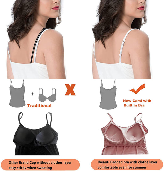 Ibeauti Womens Camisoles Tops with Built in Padded Bra Basic Breathable Tank Top (M, White)