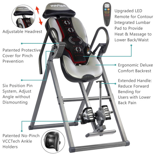 INNOVA HEALTH AND FITNESS ITM5900 Advanced Heat and Massage Inversion Table, Gray/Black