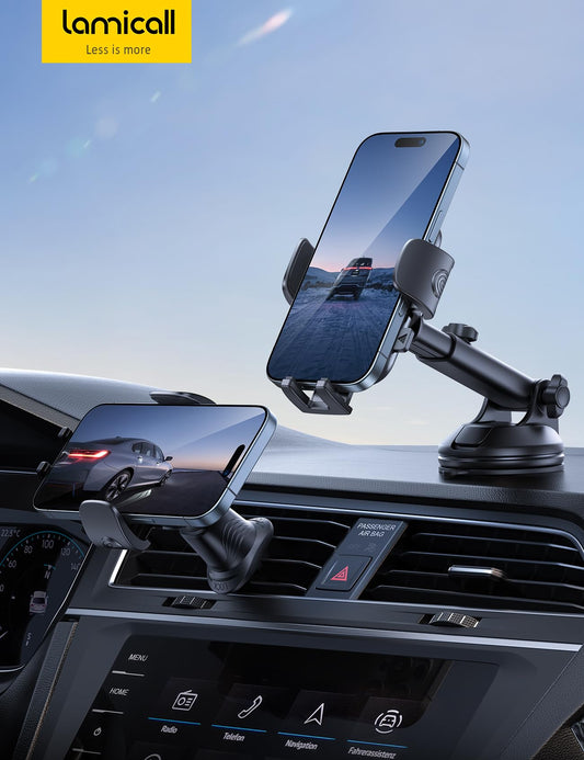 Lamicall Phone Mount for Car [3-in-1 Military-Grade Suction Cup] 360° Rotation Phone Holders for Your Car [Metal Hook] Cell Phone Car Mount Dashboard Vent Windshield for iPhone 17 16 15 Pro Max