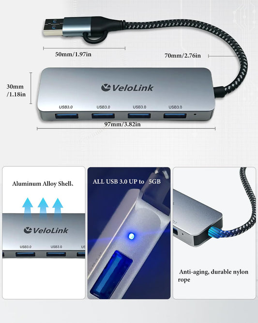 USB 3.0 Hub, USB Multiport Adapter, USB Extender Hub 4 Port, USB Splitter for Laptop/PC/MacBook/iPad Pro/iMac and More