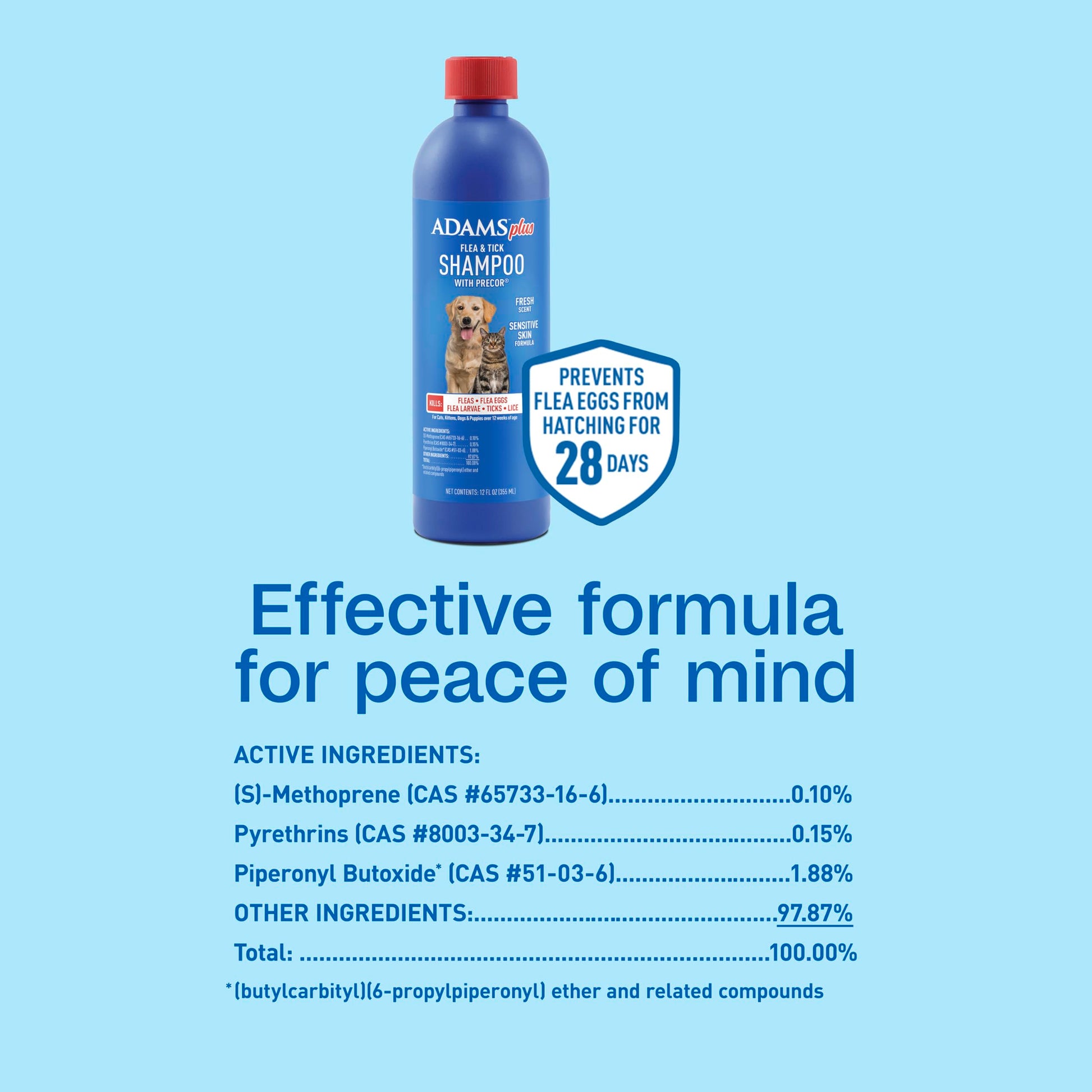 - CONTINUOUS PROTECTION: This shampoo stops the flea life cycle and keeps flea eggs from hatching for 28 days