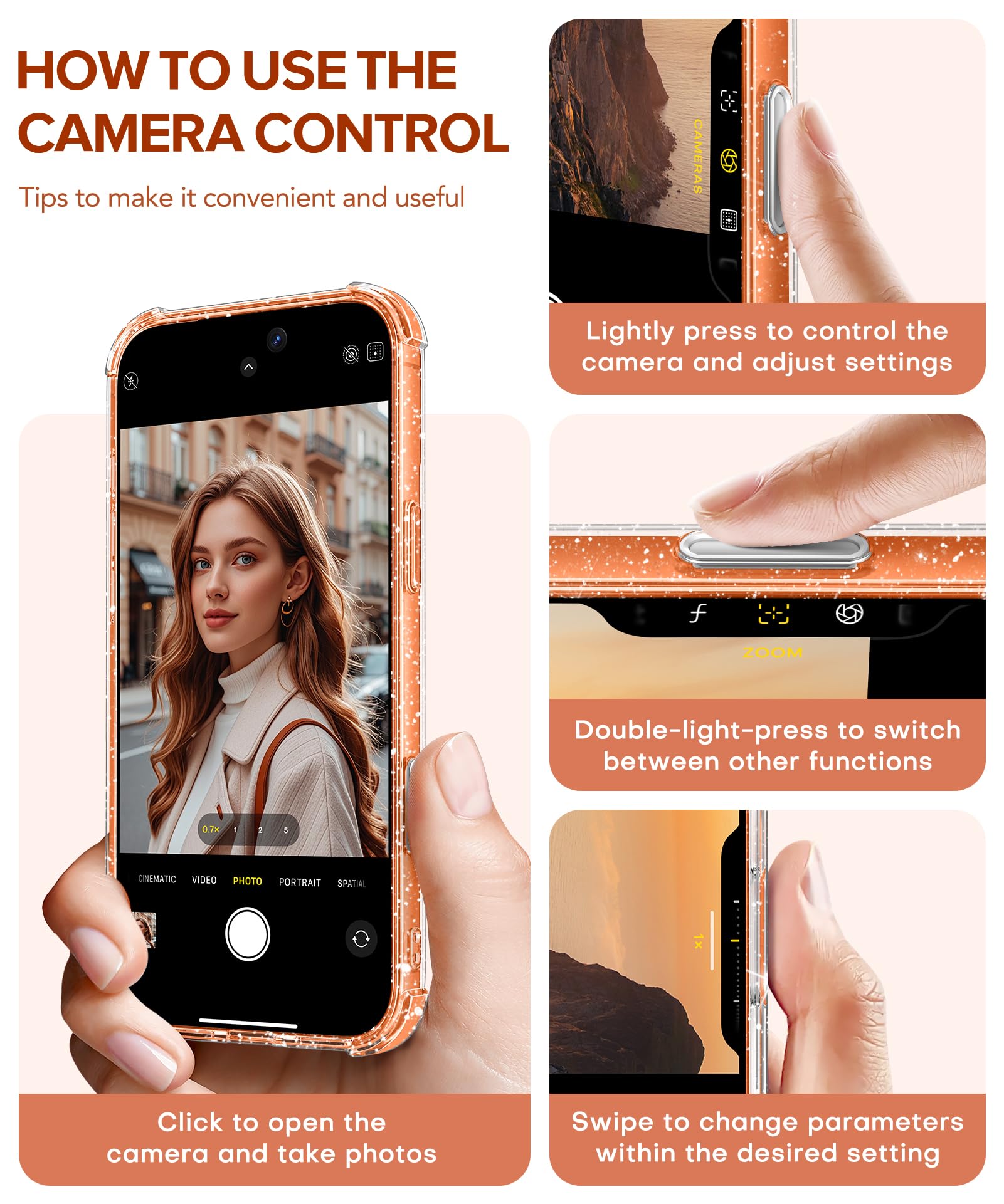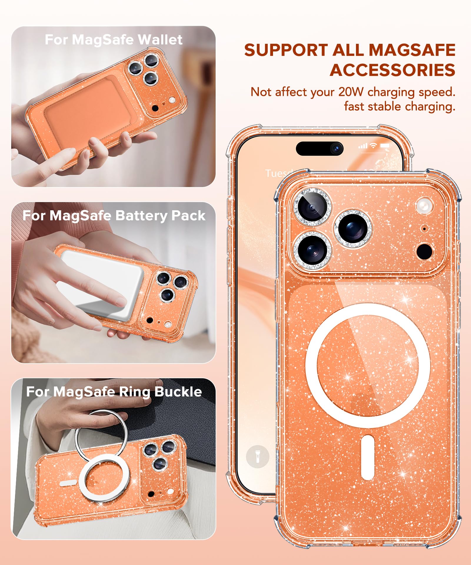 - [Long-lasting Glitter & Anti-Yellowing] This iPhone 17 Pro Max glitter case is made of hard PC backplate and soft TPU frame, maintains crystal-clear clarity for the long haul. The embedded crystal glitter will never peel off and stay shiny, giving your case a long-lasting clear glitter