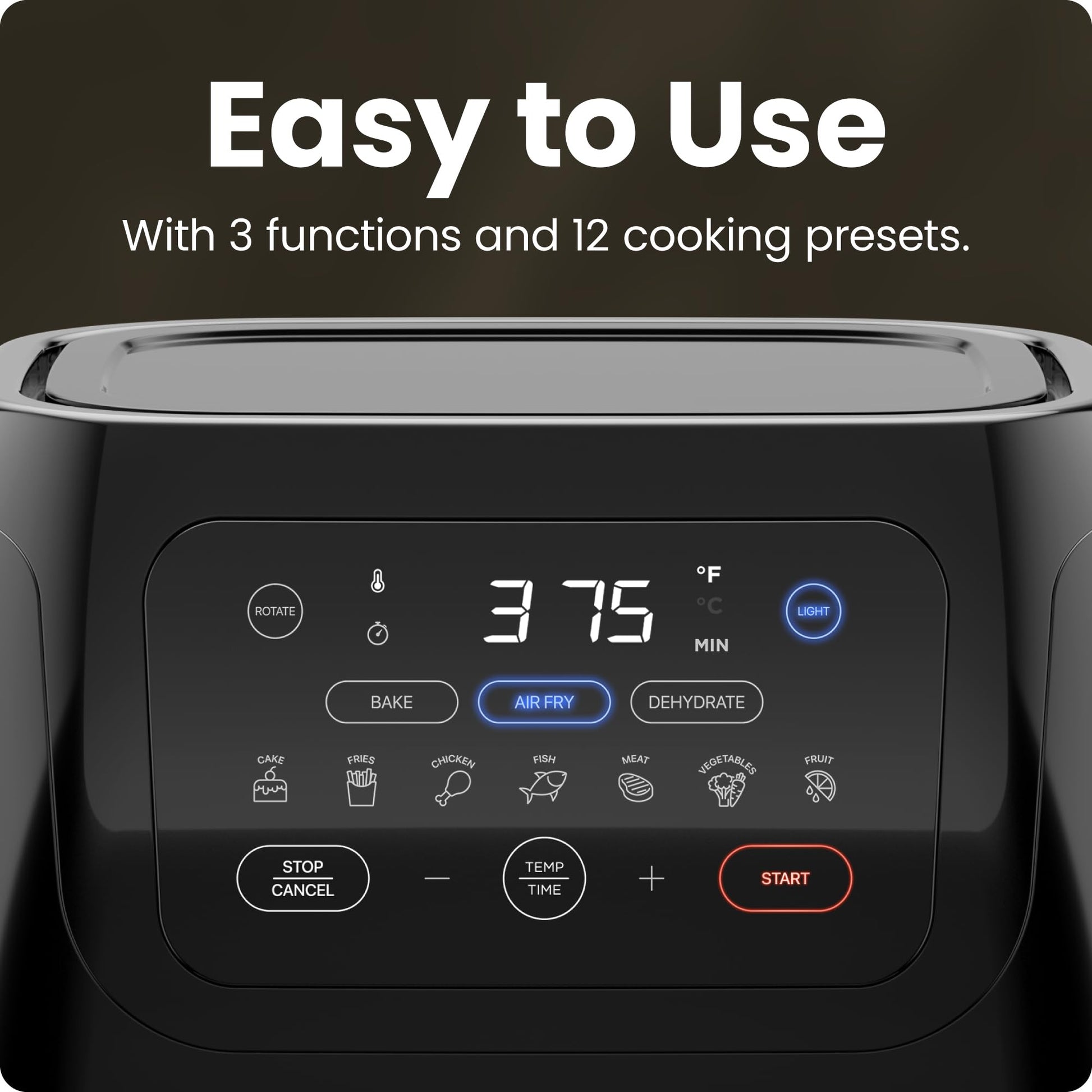Versatile countertop cooking: Air fry, bake, dehydrate, rotisserie, or roast to crispy perfection in one convenient appliance