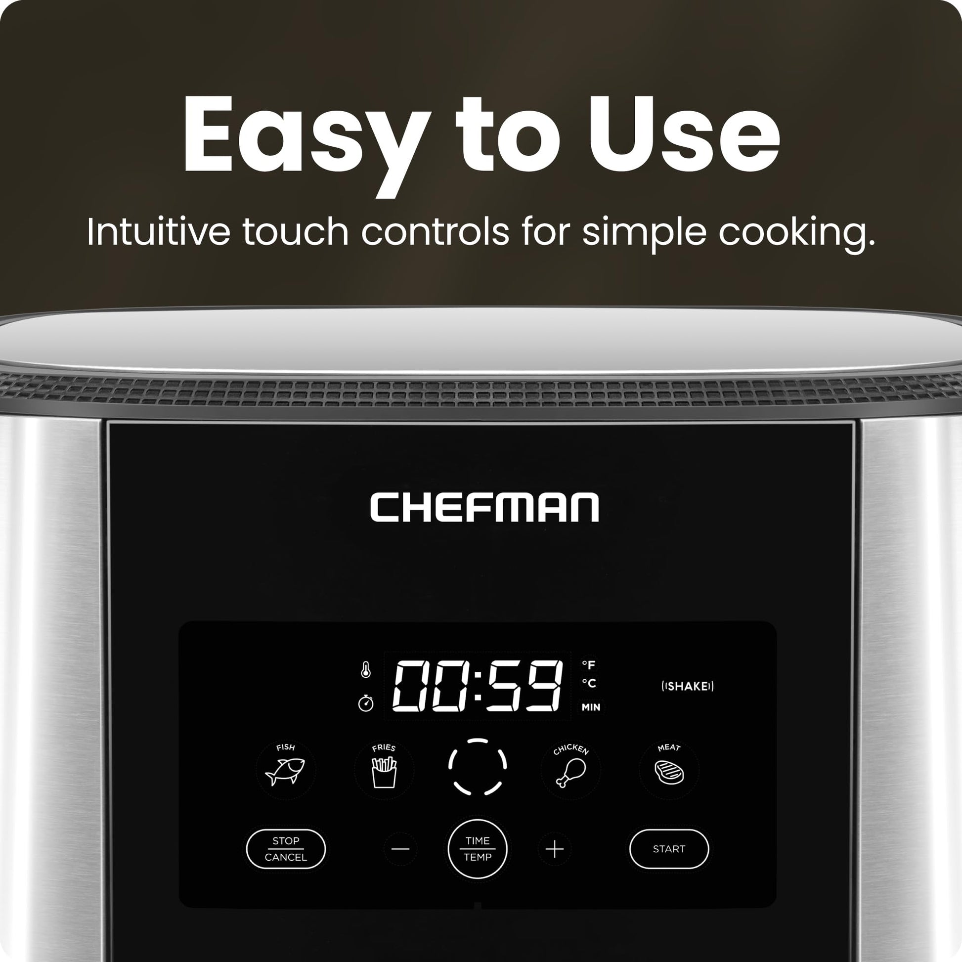 Chefman TurboFry® Touch Air Fryer, XL 8-Qt Family Size, One-Touch Digital Control Presets, French Fries, Chicken, Meat, Fish, Nonstick Dishwasher-Safe Parts, Automatic Shutoff, Stainless Steel