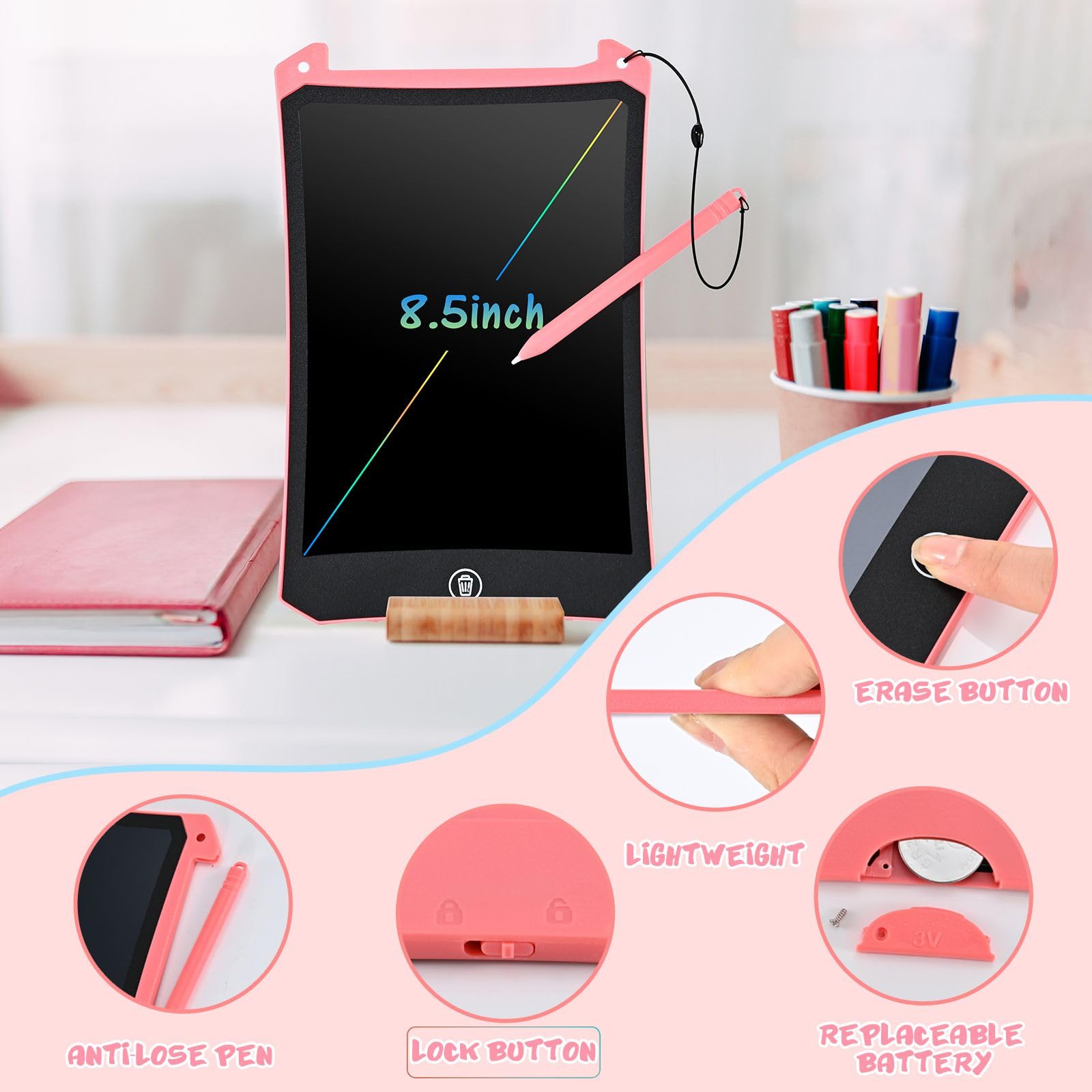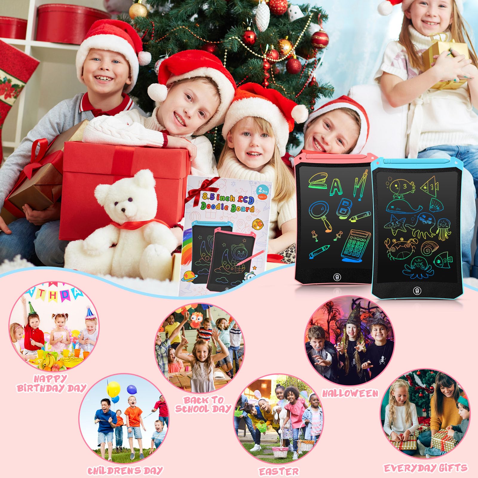- Package and Toys for Toddlers: 8.5" LCD writing tablet with battery inside *2 + attach string *2 + stylus *2 + pen clip *2 . The doodle board is a wonderful gift for boys girls. The lcd writing tablet is a good educational learning toy, which helps children free their imagination and creativity, making kids' childhood more colorful.