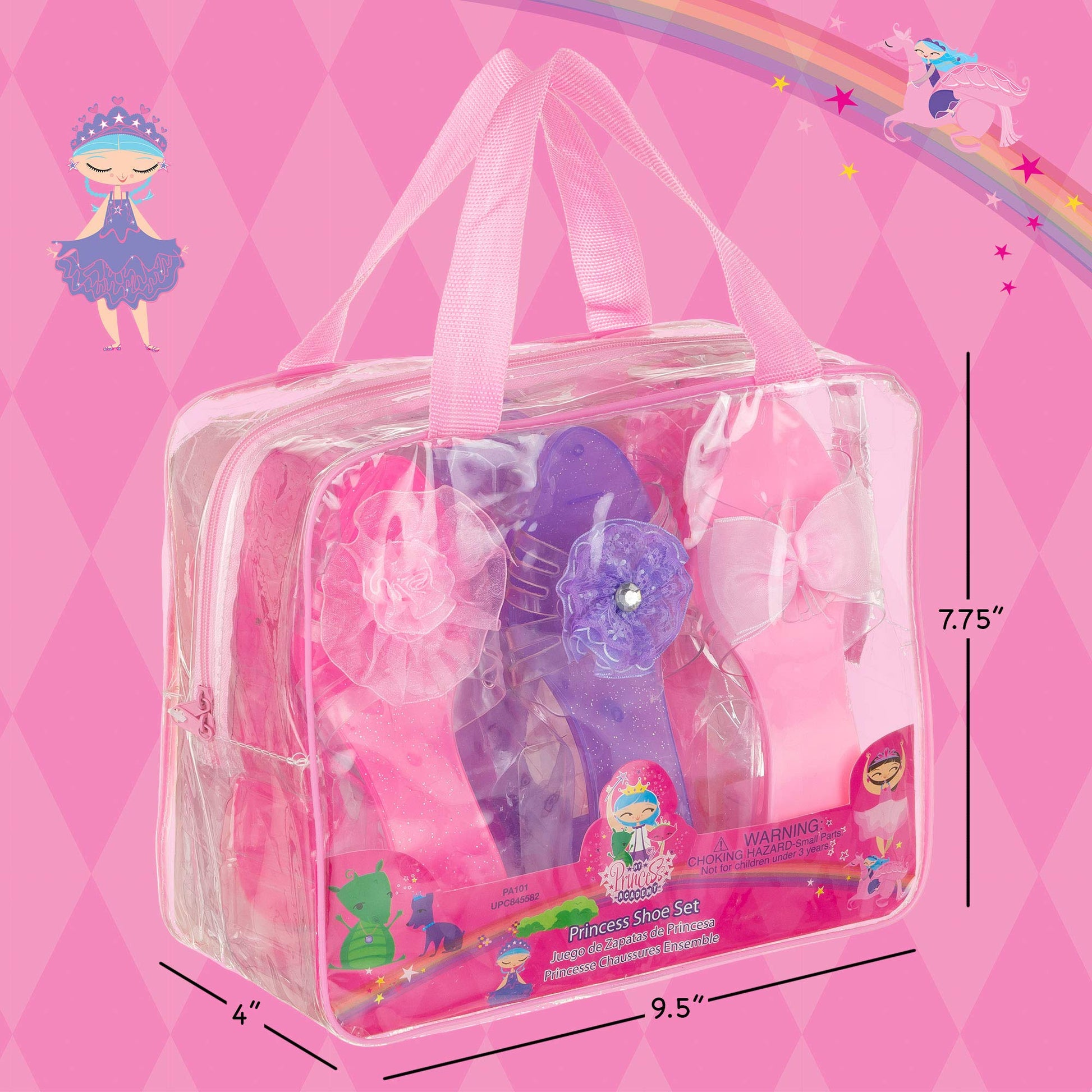 Expressions Kids 3 Pack Dress Up Royalty Shoes with Heels Set in Carrying Bag - Fits Toddler Size 7-10 - Pink, Rose, Lilac Perfect Little Girl Toys Role Play Playset