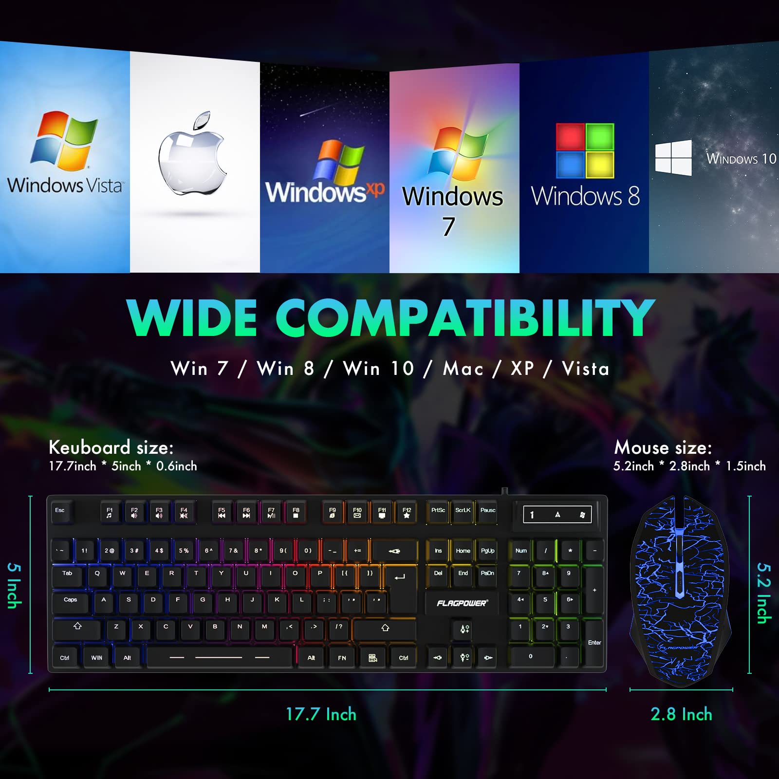Friendly Reminder: Your 100% satisfaction is our goal. Full 1 year manufacturer's support, 24h friendly service team. The keyboard combo support system: Win 7/Win 8/Win 10/XP/Vista/Mac OS.