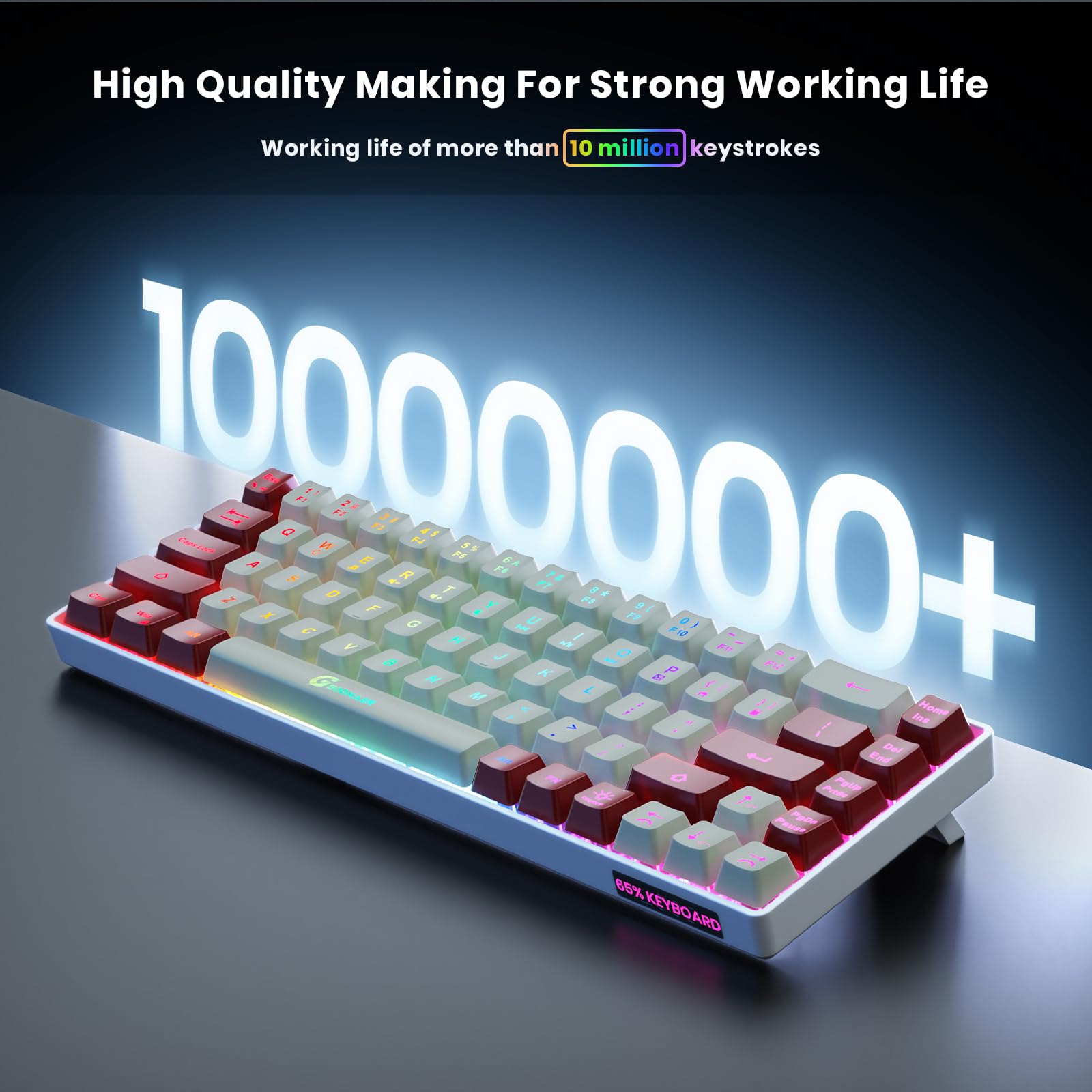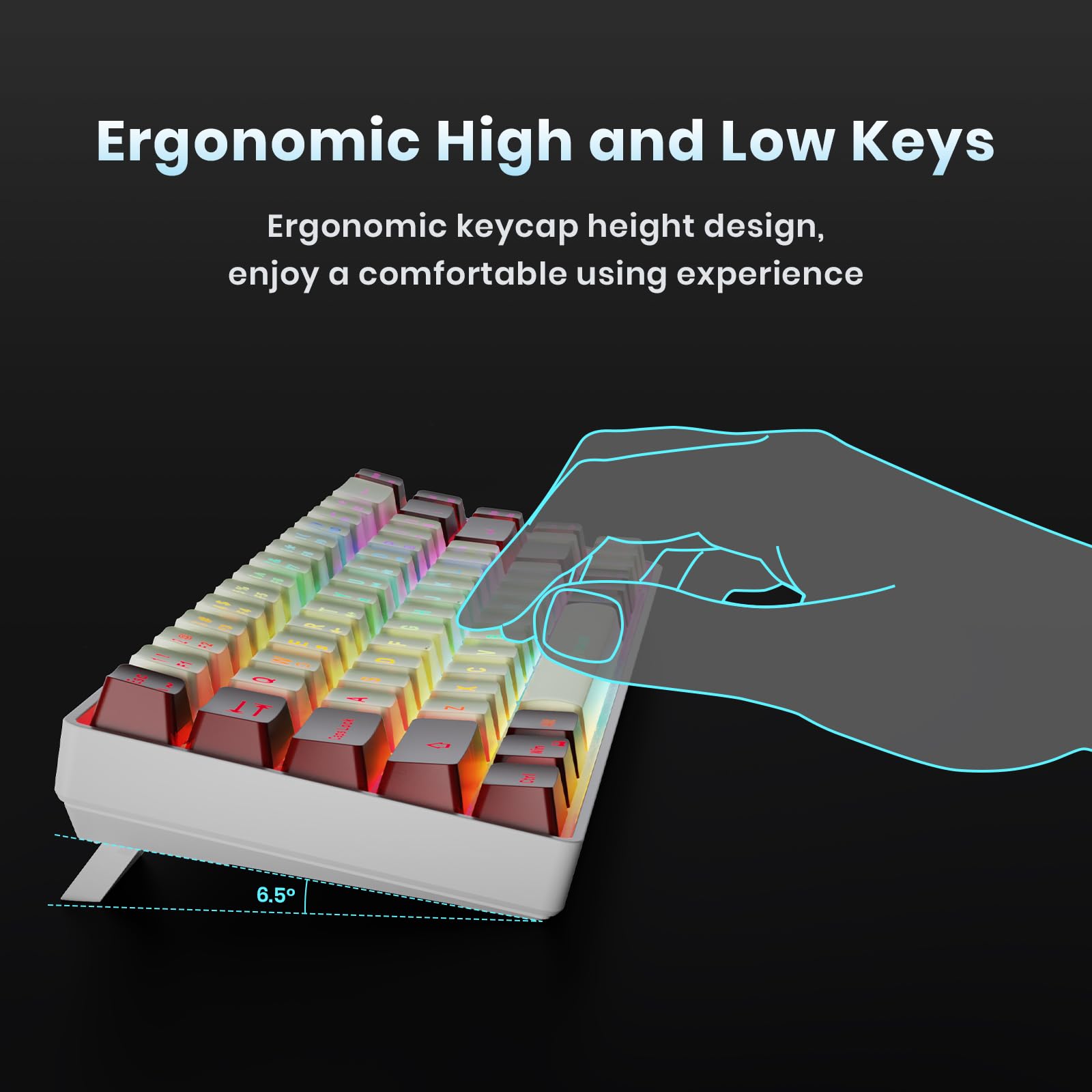 【65% Compact Design】GEODMAER Wireless gaming keyboard compact mini design, save space on the desktop, novel white & red keycap color matching, separate arrow keys, No numpad, both gaming and office, easy to carry size can be easily put into the backpack