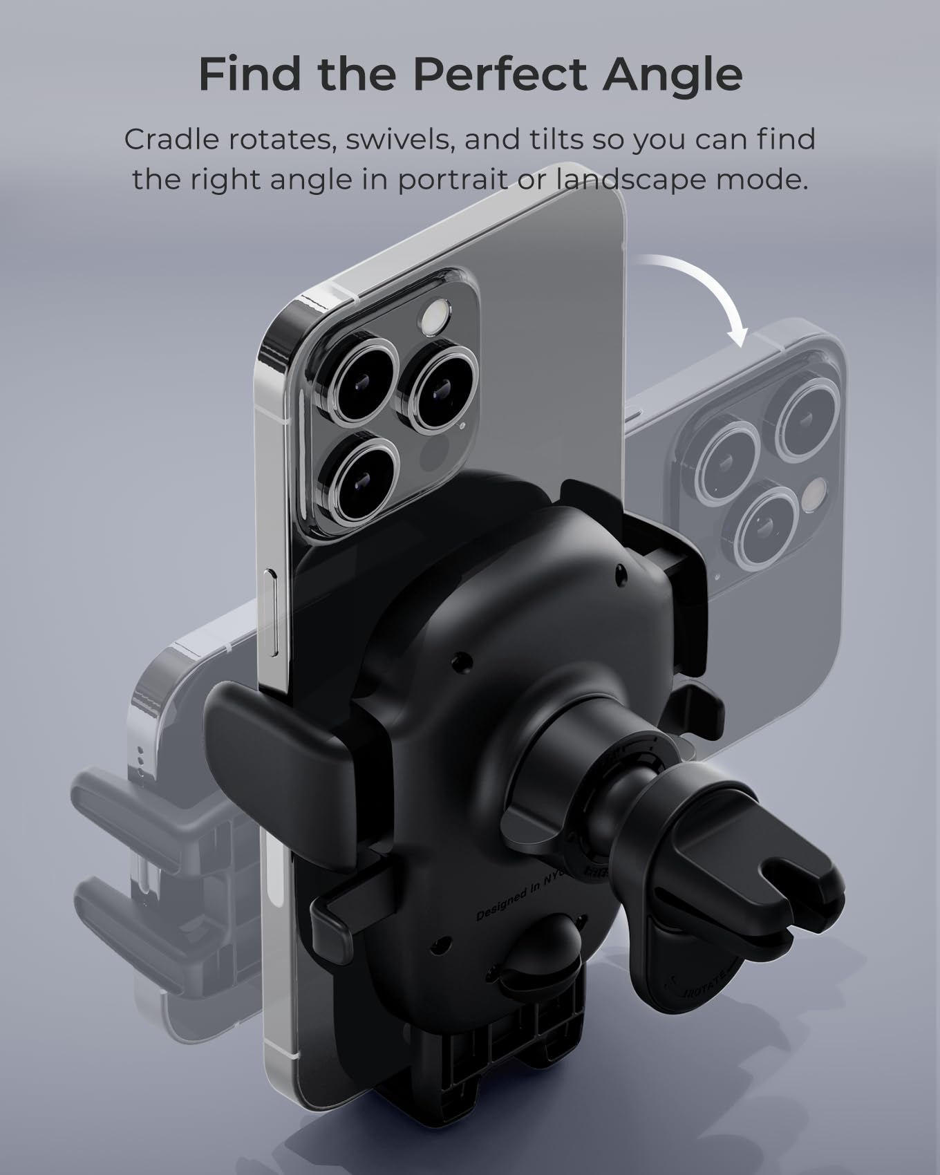 Stabilizing Cradle: Improved cradle design features self-centering arms for added stability and a quieter, more secure hold with easy charging port access.