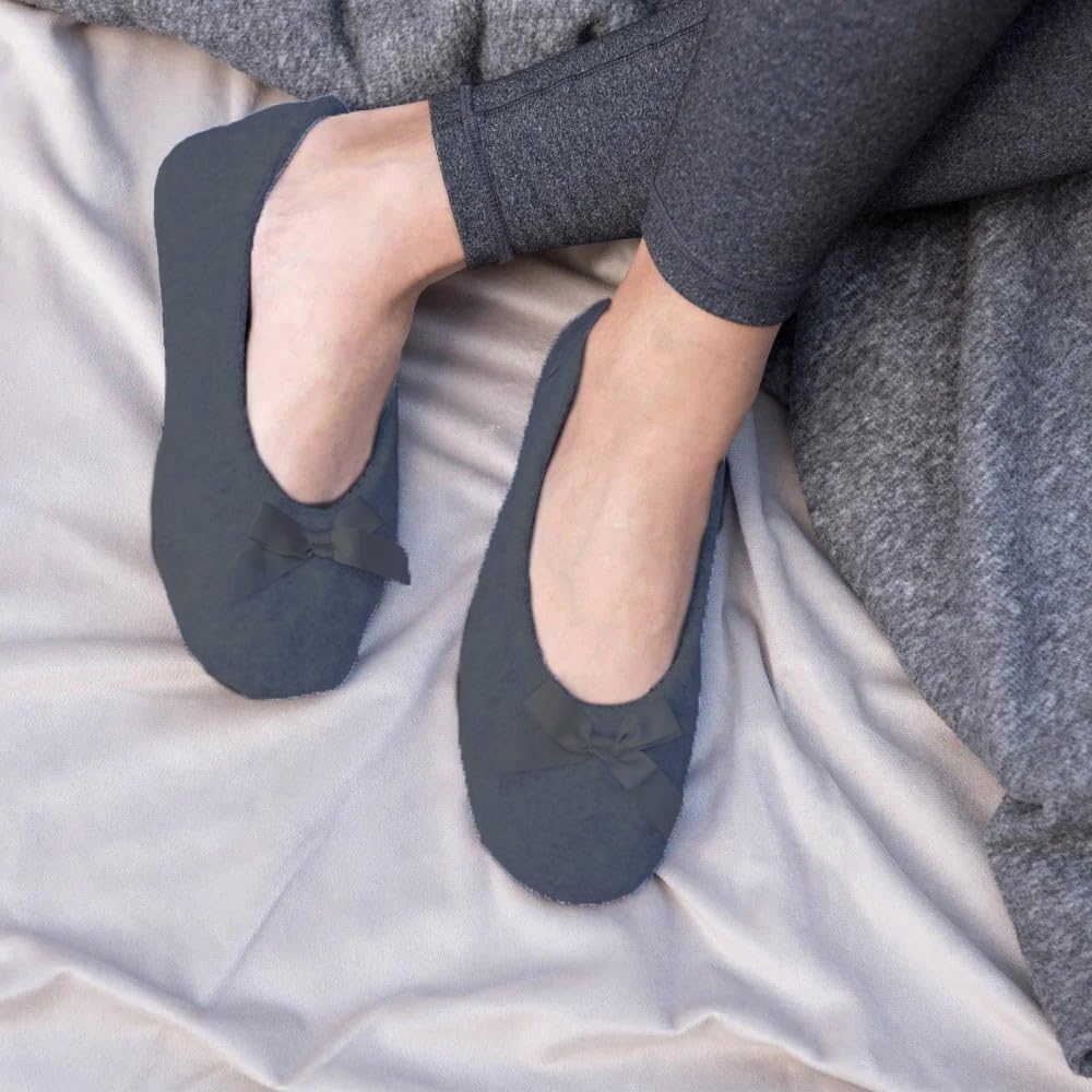 TWO PAIRS OF COZY CLASSICS: Enjoy double the comfort with two pairs of plush terry ballerina slippers. Each pair features a soft cotton-blend lining, flexible fit, and timeless satin bow—your new go-to house shoes for relaxing in style.