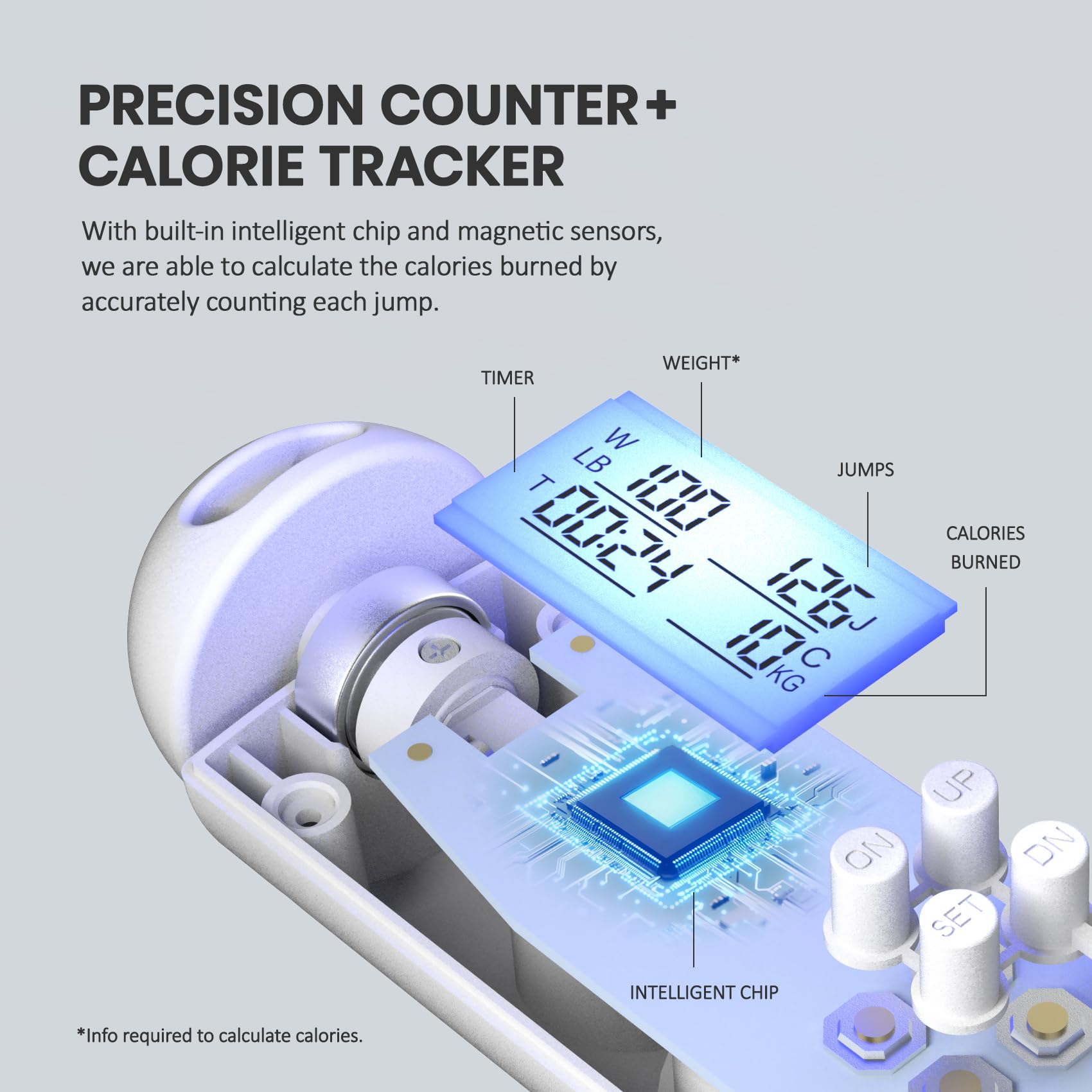 【Smart Jump Rope with Counter】Achieve your fitness goals effortlessly with the upgraded jump rope featuring an integrated counter. Simply input your weight and fitness objectives to track real-time data, including timer, calorie burn, and jump counts. Stay motivated and monitor your progress with every session.