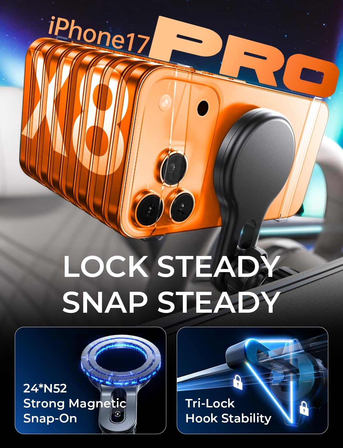 LISEN 15W MagSafe Car Mount Charger, [Stable & Fast Charging] Magnetic Wireless Car Charger, Car Phone Holder Charger Fits iPhone 17 Pro Max Air 16-12,Pixel 10, Samsung S25/S24 with MagSafe Case