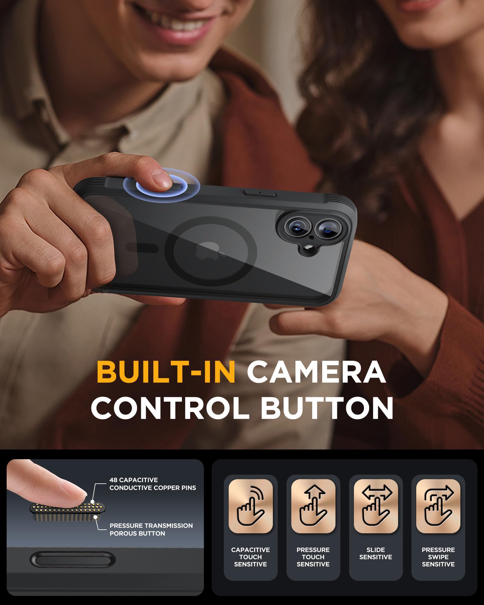 【Military Full Body & Unique Camera Control】SGS test standard: MIL-STD-810H-2019.SGS certificate No.: GZMR220802655103.Military-grade 8000 times drop tested. Dual layer provides 360 grad full body rugged.Unique camera lens&camera control button Protector.Different from other brands' direct hole digging design, Miracase's design focuses more on the overall protection of the phone, providing a more comfortable grip without affecting the use of camera control.
