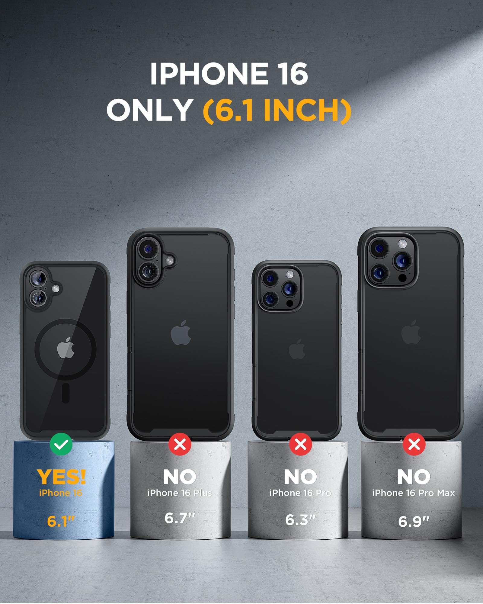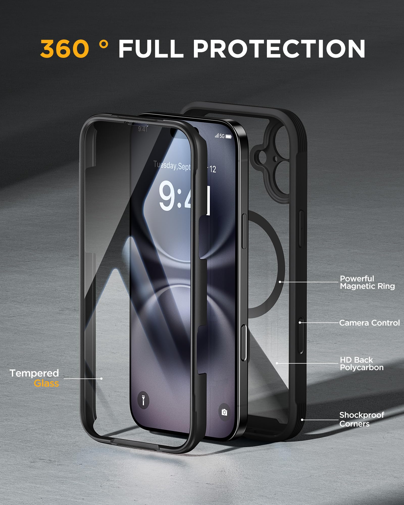Miracase for iPhone 16 Case 6.1'', Full-Body Bumper Phone case with Built-in Full Glass Screen &Camera Control,No Gap,Compatible with MagSafe,Drop Proof 16 Cover,Black