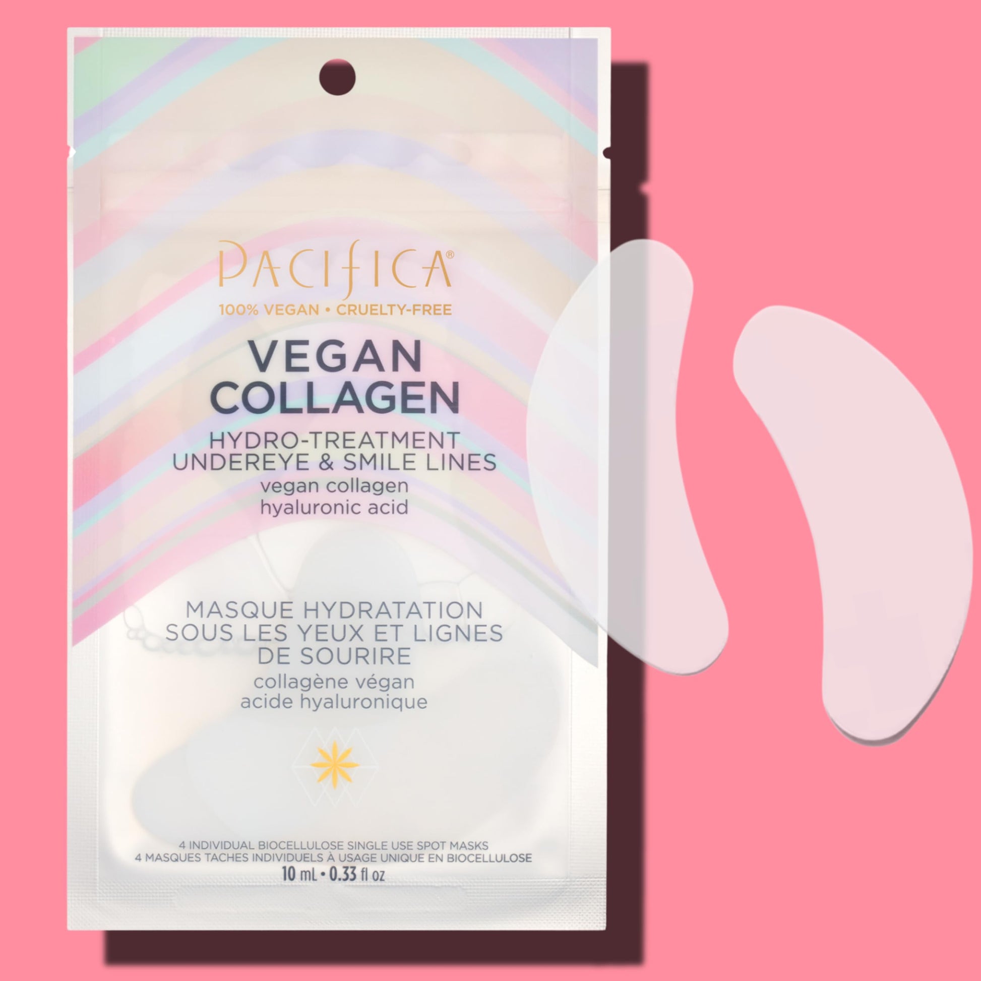 Pacifica Undereye & Smile Mask Set – Vegan Collagen Hydro Treatment with Hyaluronic Acid, Hydrating for Dark Circles, Dry & Combination Skin, Vegan & Cruelty-Free, 4 Pieces