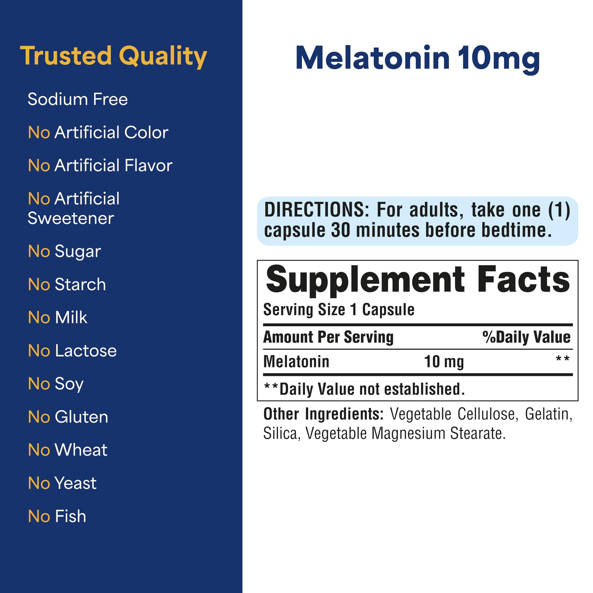 ENHANCES RESTFUL SLEEP: Puritan’s Pride Melatonin 10mg, 120 rapid release capsules are formulated to provide 10mg of Melatonin per dose, helping you fall asleep quickly and enjoy longer sleep*