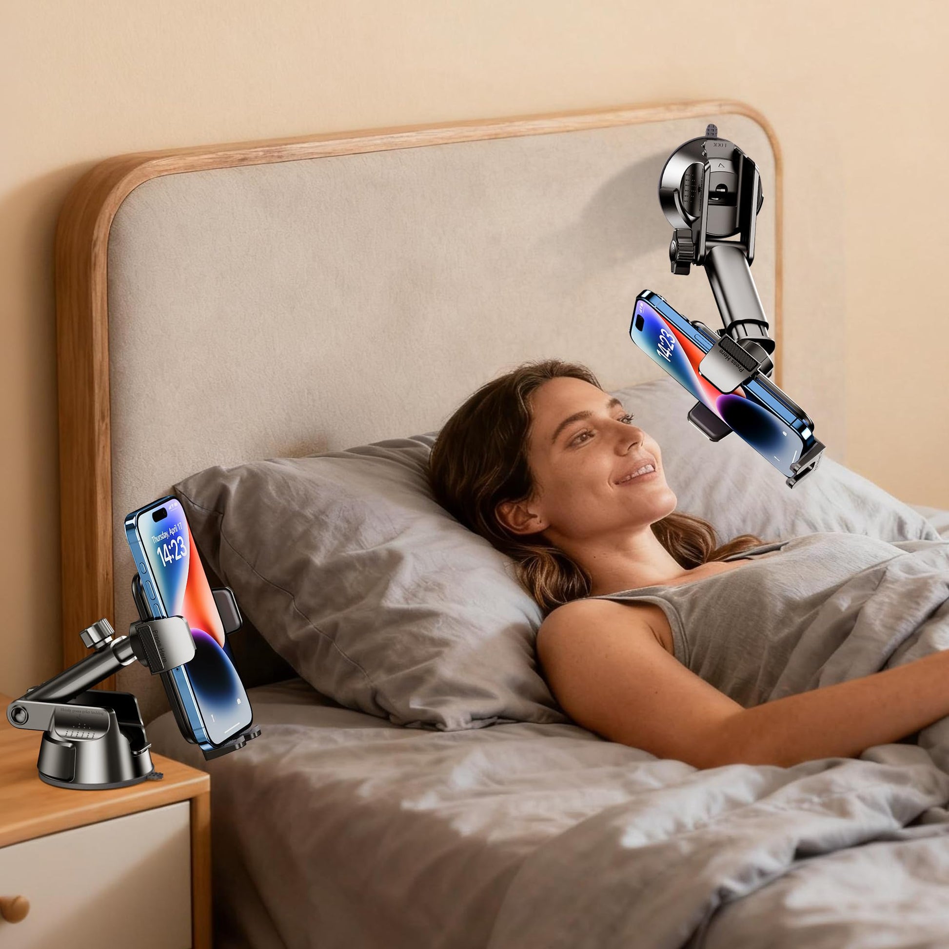 Strong Suction Performance: Car phone holder comes with a double-locked suction cup made of heat-resistant TPU material, guaranteeing it stays firmly attached to your dashboard even in extreme heat. Reactivate its sticky power by washing with water and air-drying.