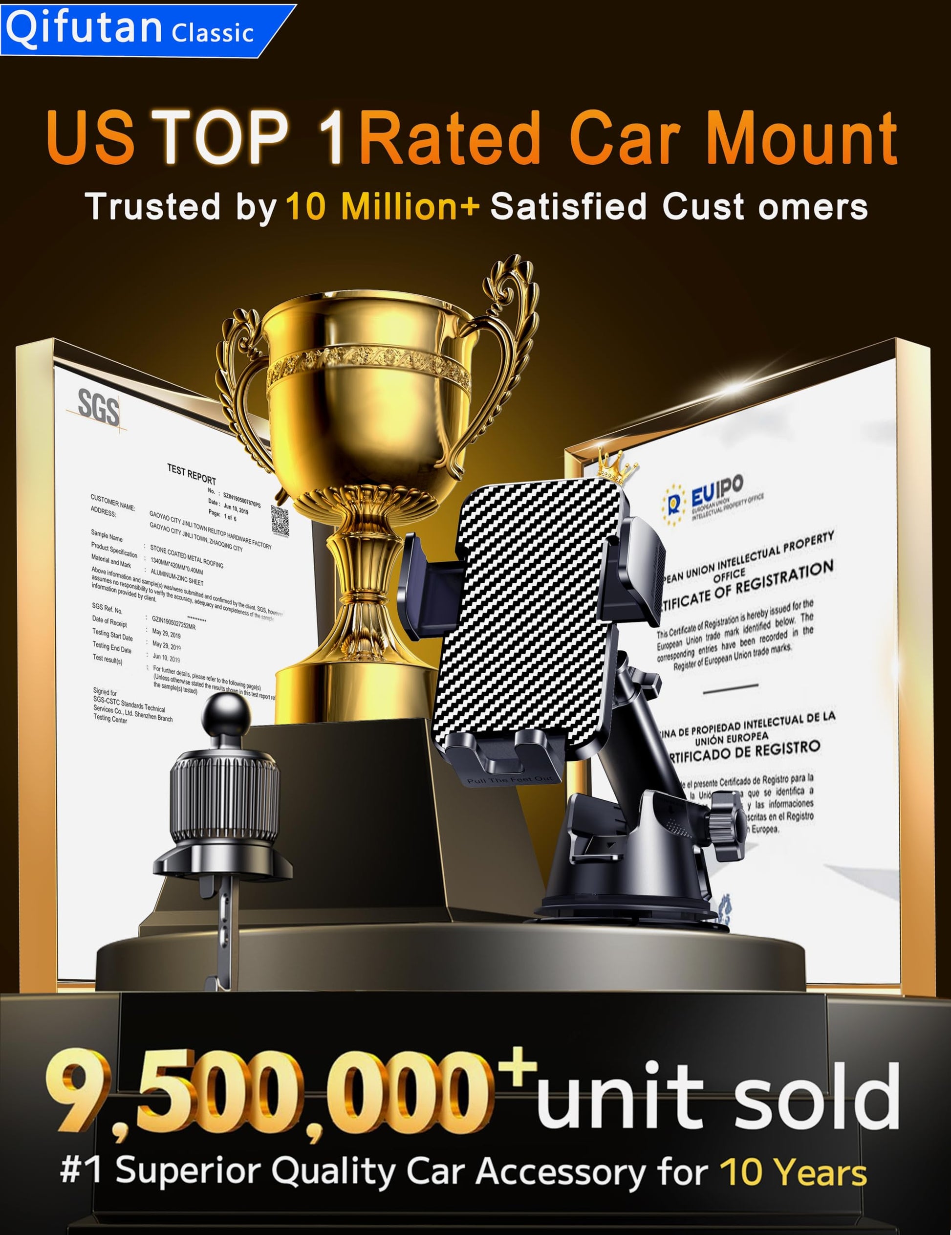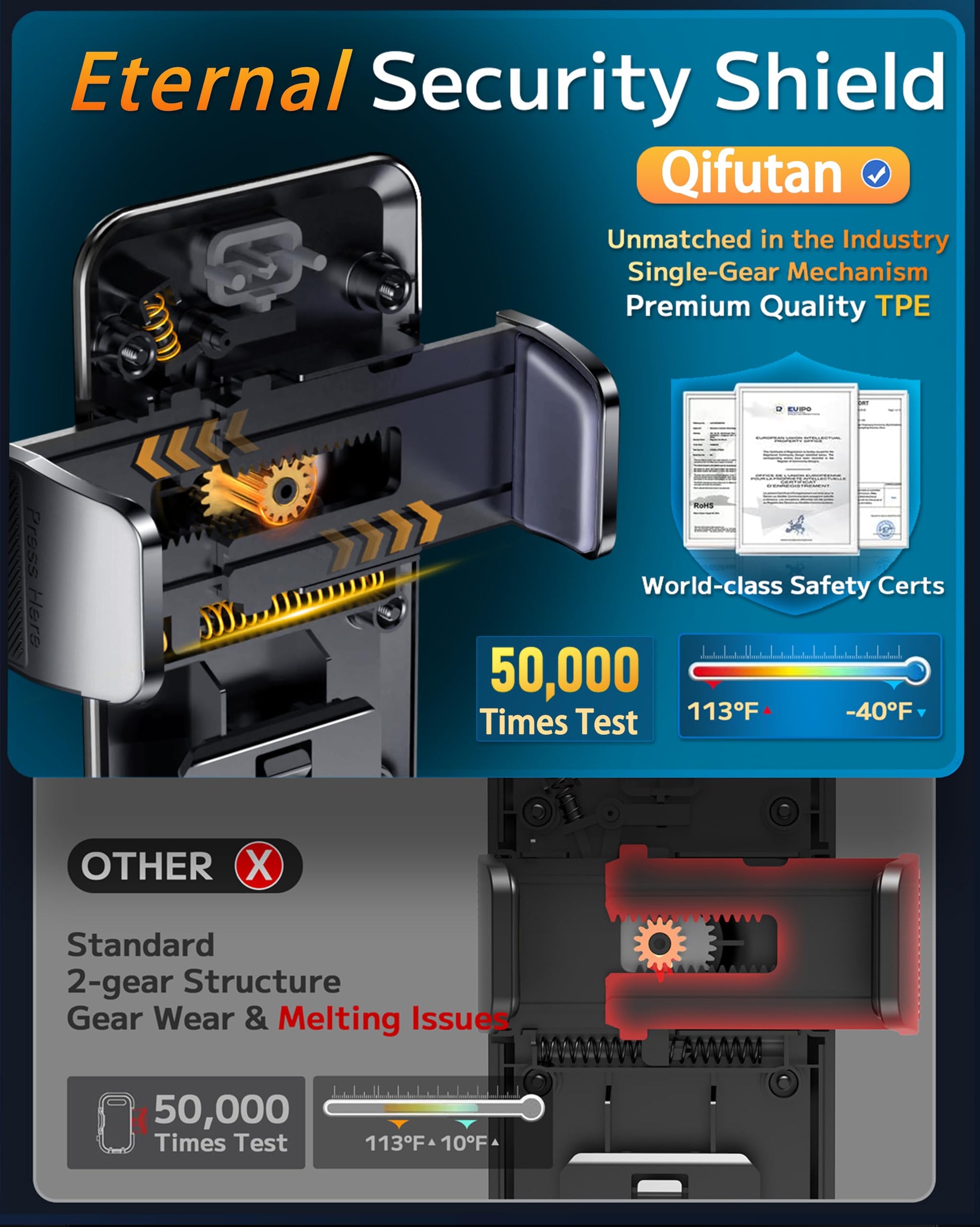Qifutan Dash Mounted Holders Phone Holders for Your Car Phone Mount for Car Windshield Dashboard Air Vent Universal Desk Mounts Hands Free Automobile Cell Phone Holder Fit for iPhone Smartphone
