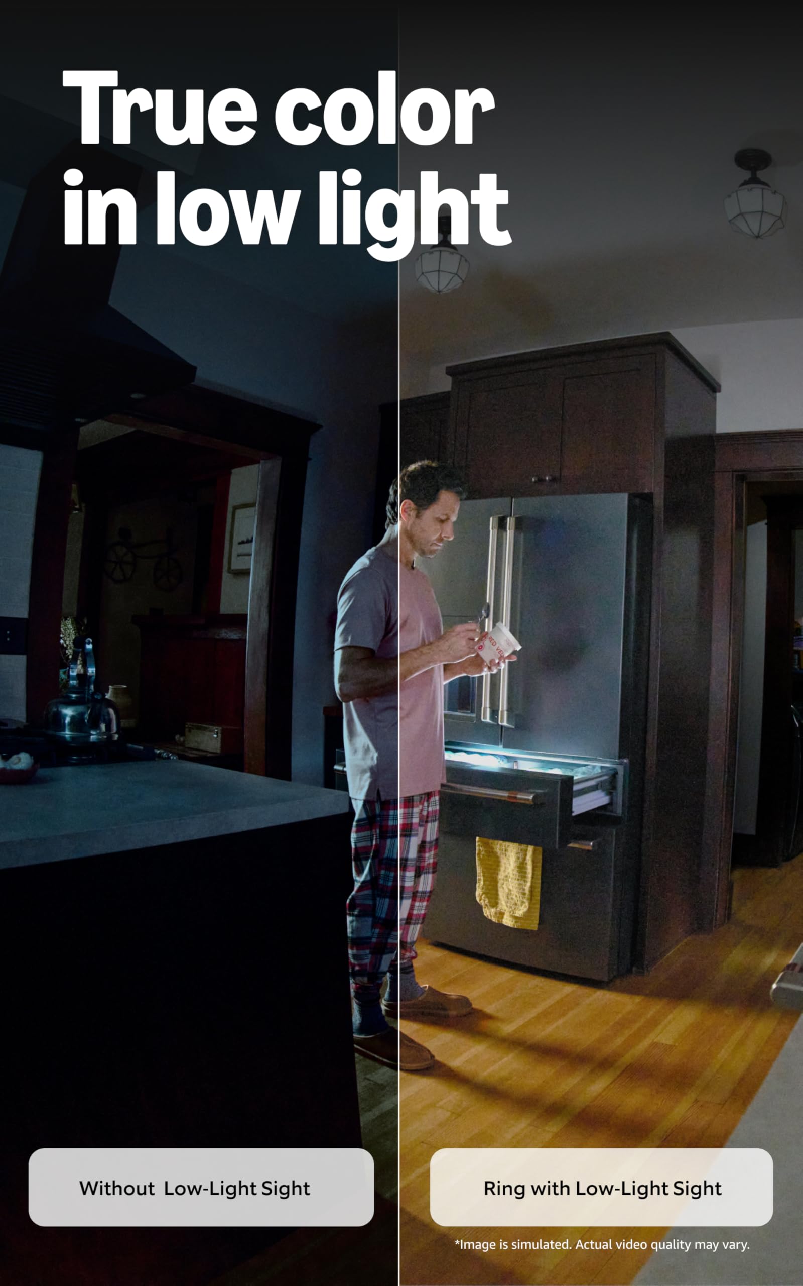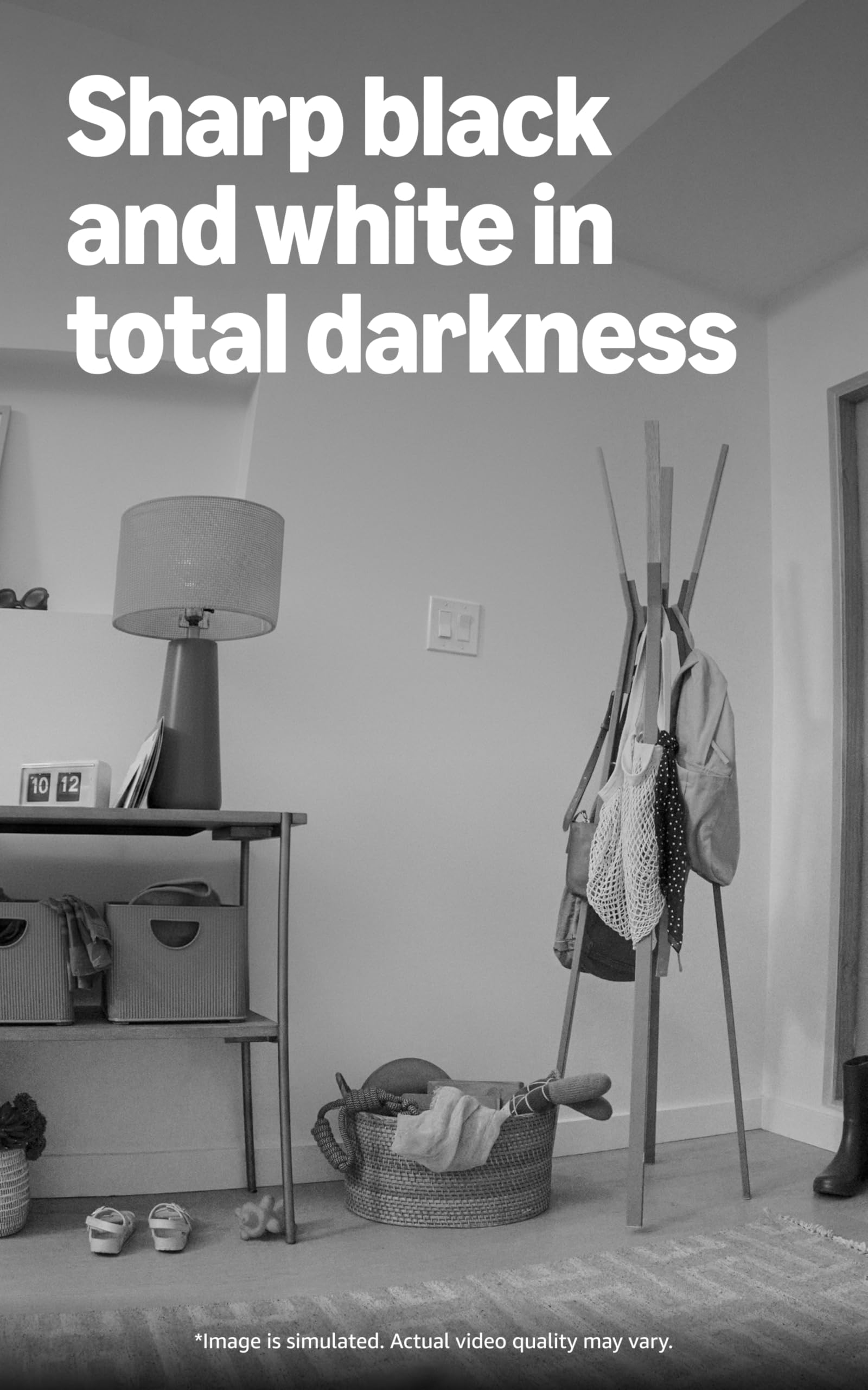 True color, even in low light — With Low-Light Sight, just a little ambient light gives you true color video. In total darkness, your camera switches to crisp black-and-white to keep details sharp.