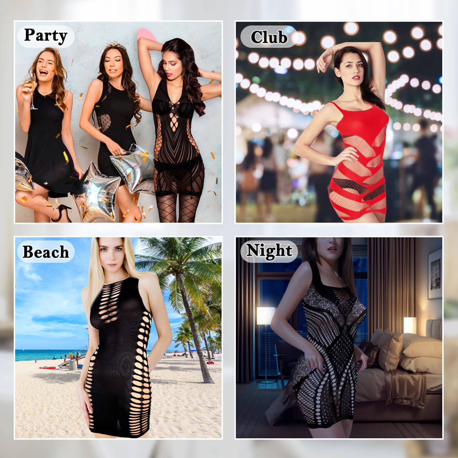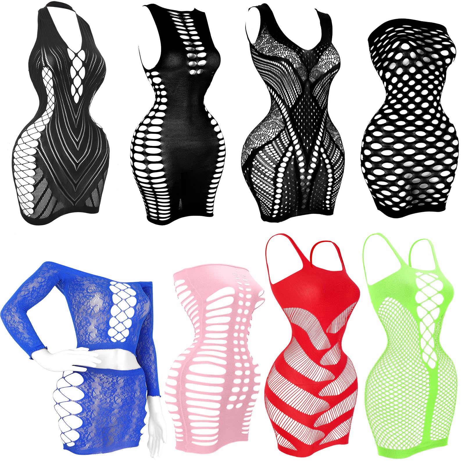 PACKAGE CONTAINS: The package comes with 8 pieces of women's fishnet dress in different styles and colors, these fashion fishnet dresses can be used as pajamas as well as everyday wear