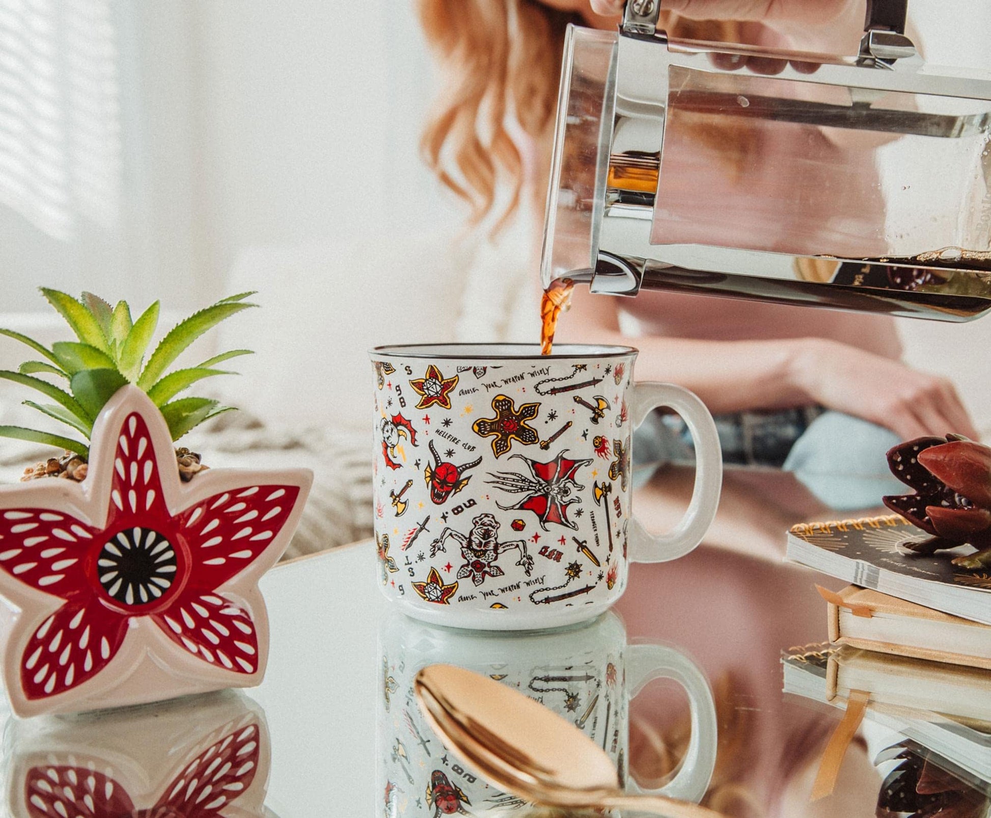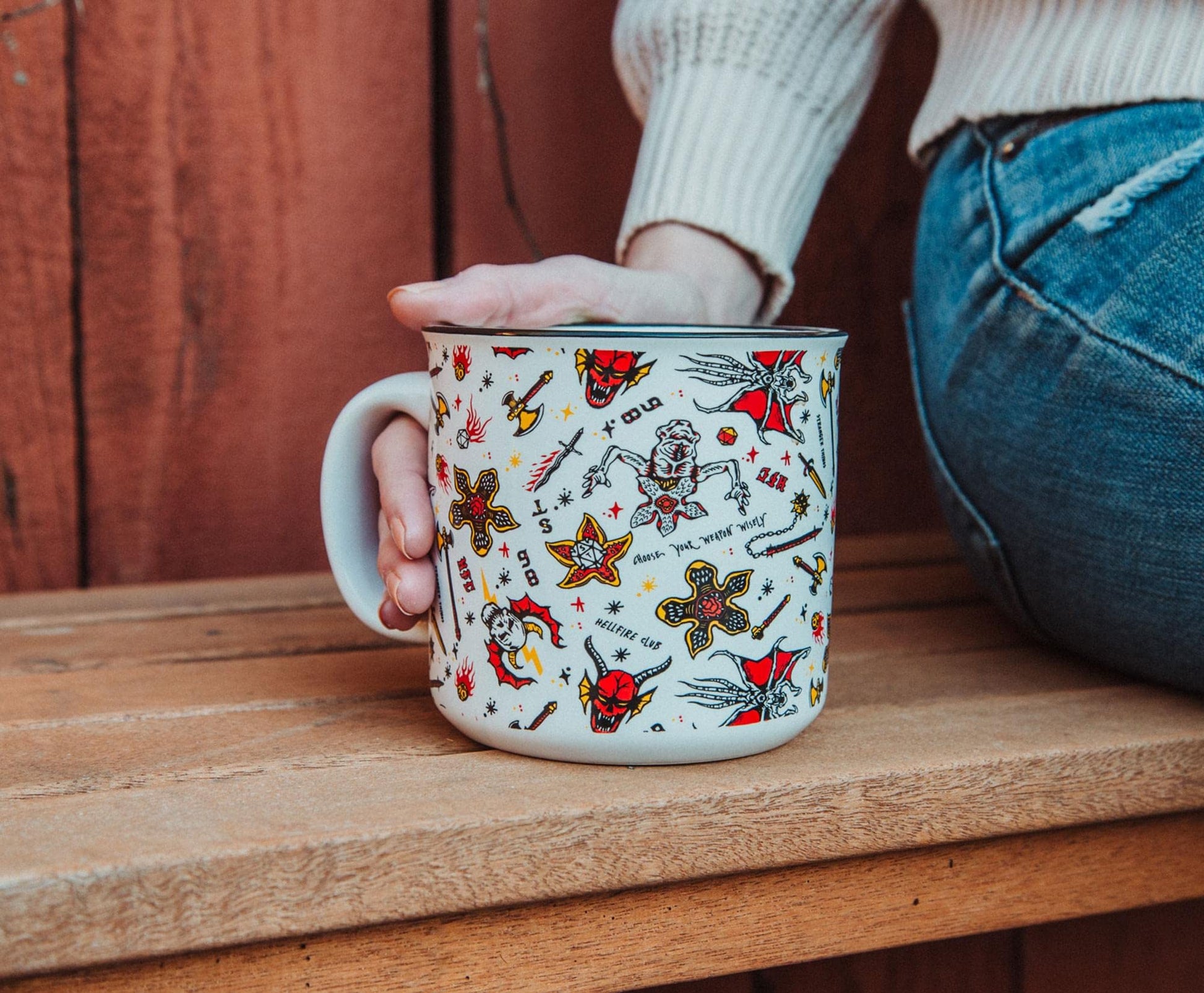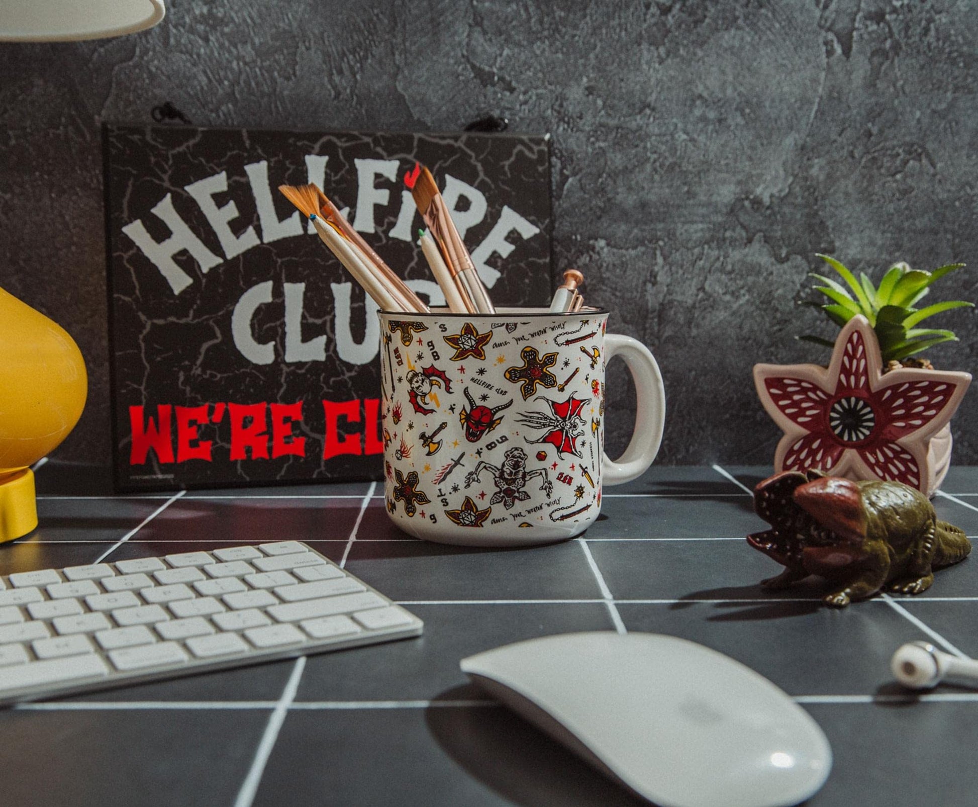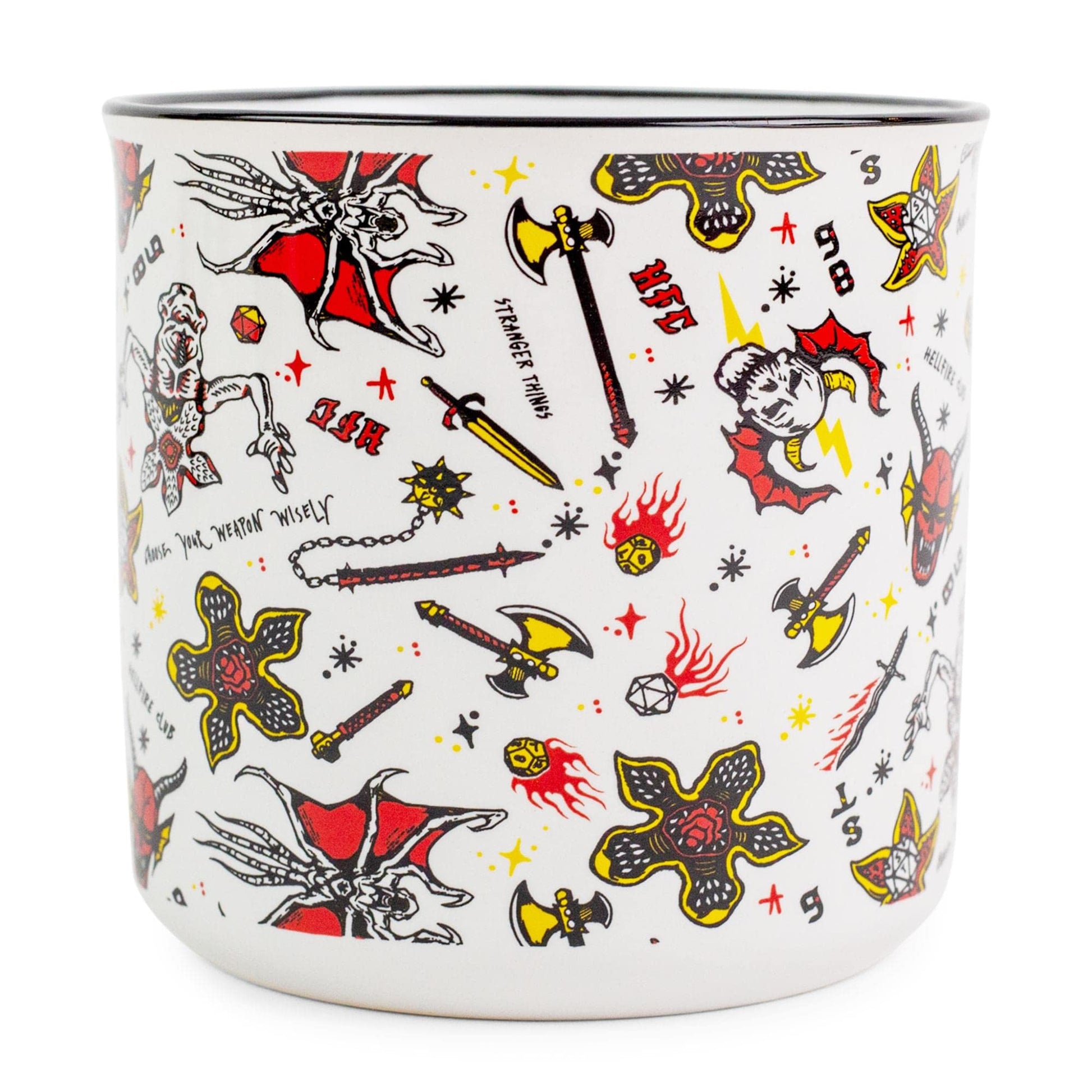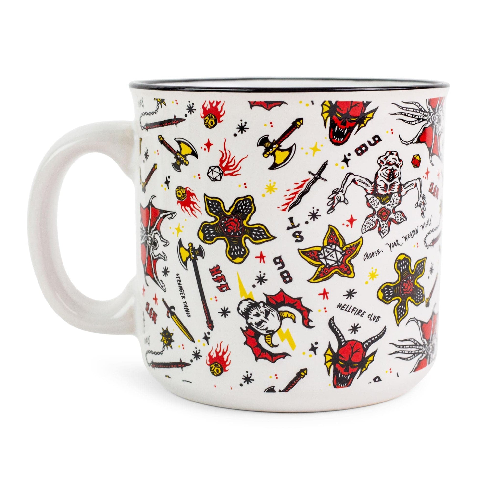 Silver Buffalo Stranger Things Hellfire Club Icons Ceramic Camper Mug | BPA-Free Travel Coffee Cup For Espresso, Cocoa, Tea | Holds 20 Ounces