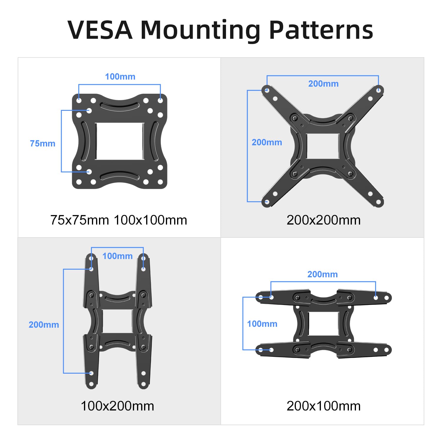 【Versatile TV Mount】- This TV wall mount fits most 13-42 inch LED, LCD, flat, and curved screen TVs and monitors, supporting up to 44 lbs and VESA/mounting holes spacing of 200 x 200mm. It's perfect for SAMSUNG, SONY, LG, VIZIO, TCL, ELEMENT, SCEPTRE, HISENSE, and other popular TV brands.