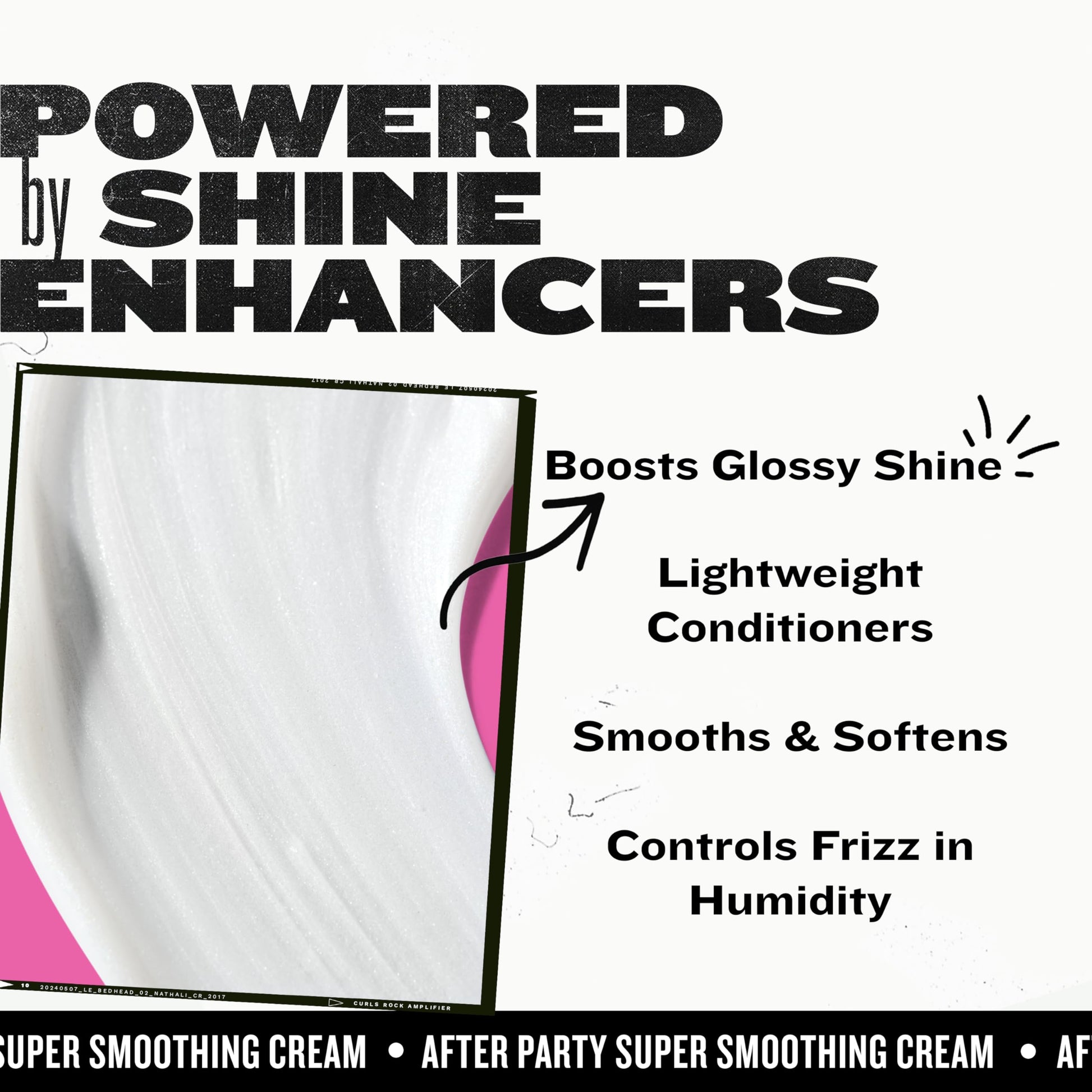Powered by an Anti-Frizz Complex, this smoothing cream blocks out humidity while taming frizz and flyaways. After Party doesn’t just smooth - it boosts shine for a salon-polished finish. Infused with light reflecting Shine Enhancers and Castor Seed Oil, this formula amplifies hair’s natural gloss while gentle conditioners soften and smooth strands.