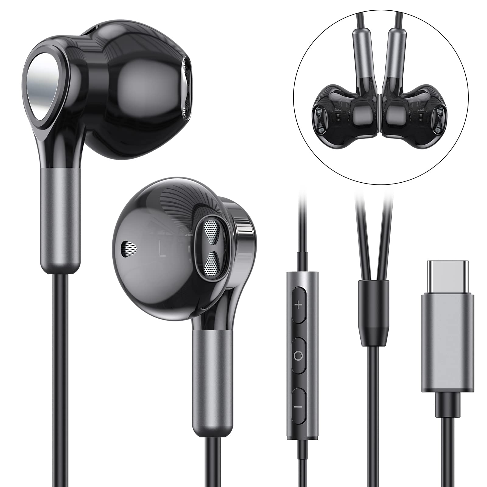 USB C Headphones for Samsung Galaxy S24 S23 Ultra S22 S21 FE S20 A54 A53 USB C Earphones with Mic Volume Control Wired Earbuds USB Type C Headphones for iPhone 16 15 Pro Max Plus iPad Pro Pixel 8 7 6a