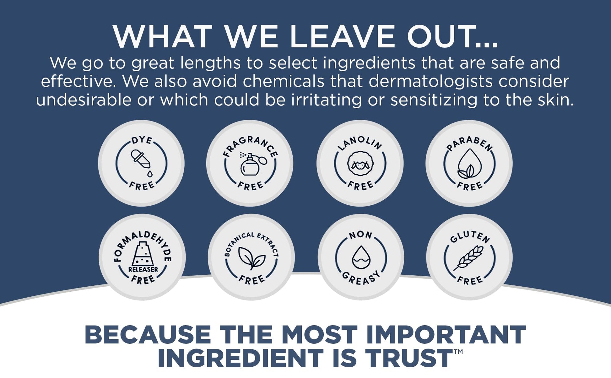 Formulated for sensitive skin – Free of fragrance, dyes, parabens, lanolin, formaldehyde releasers, and botanical extracts for a gentle yet effective cleanse.