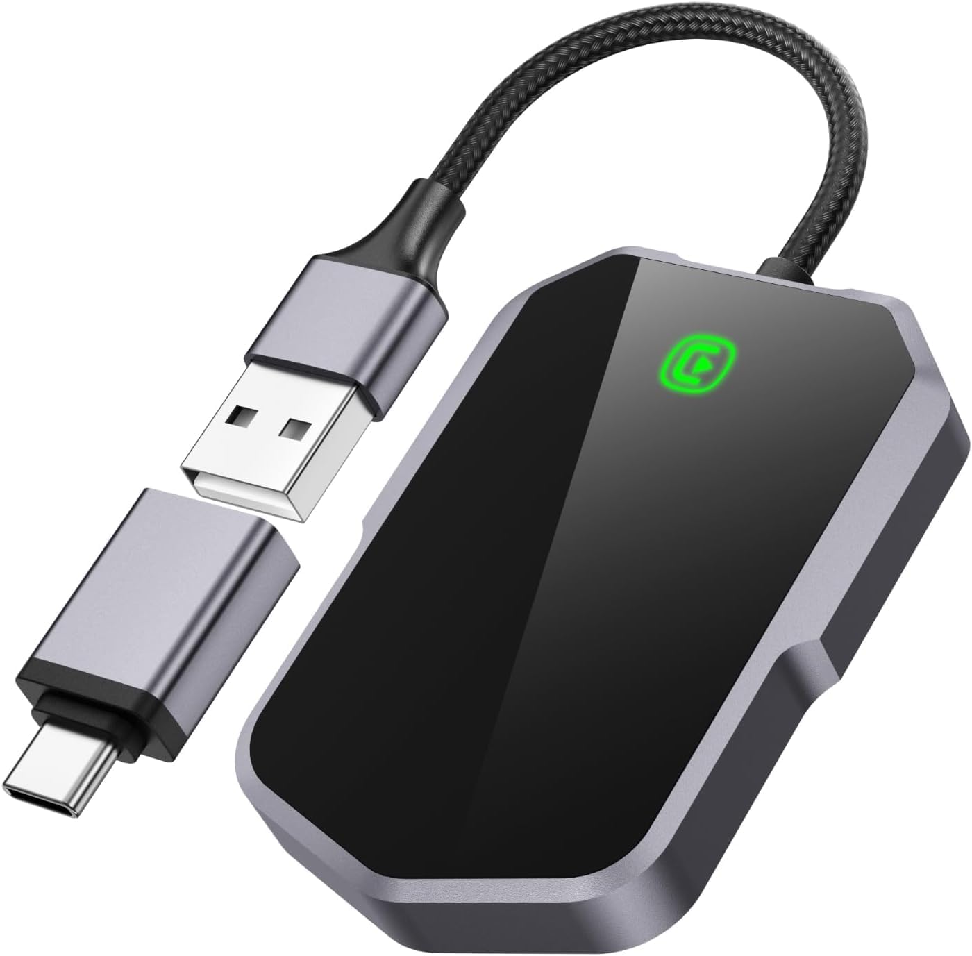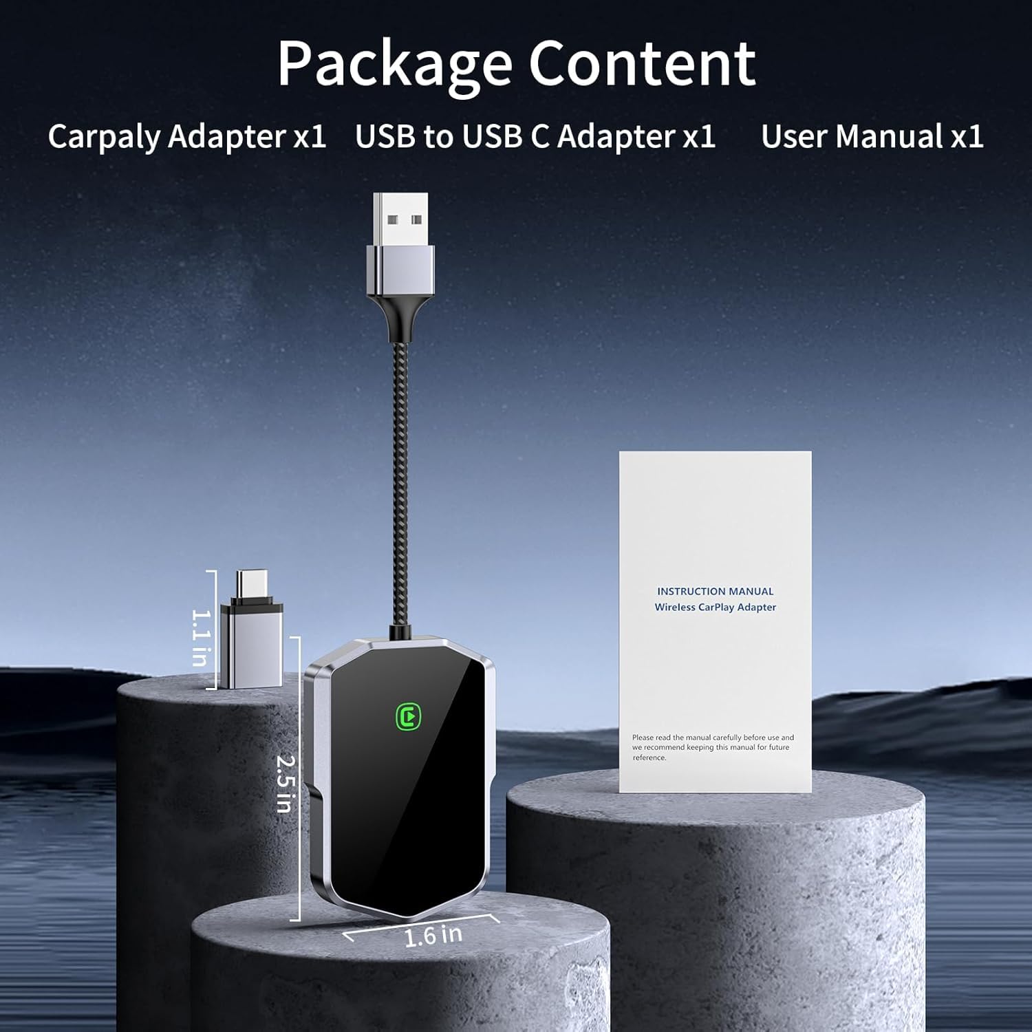 - Effortless Plug-and-Play Connection: Ditch the hassle of tangled wires and embrace the convenience of wireless CarPlay. Simply plug our adapter into your car's USB port, and it will automatically pair with your iPhone 10 or later device, ready to go in seconds. No waiting, no setup – just pure driving bliss.
