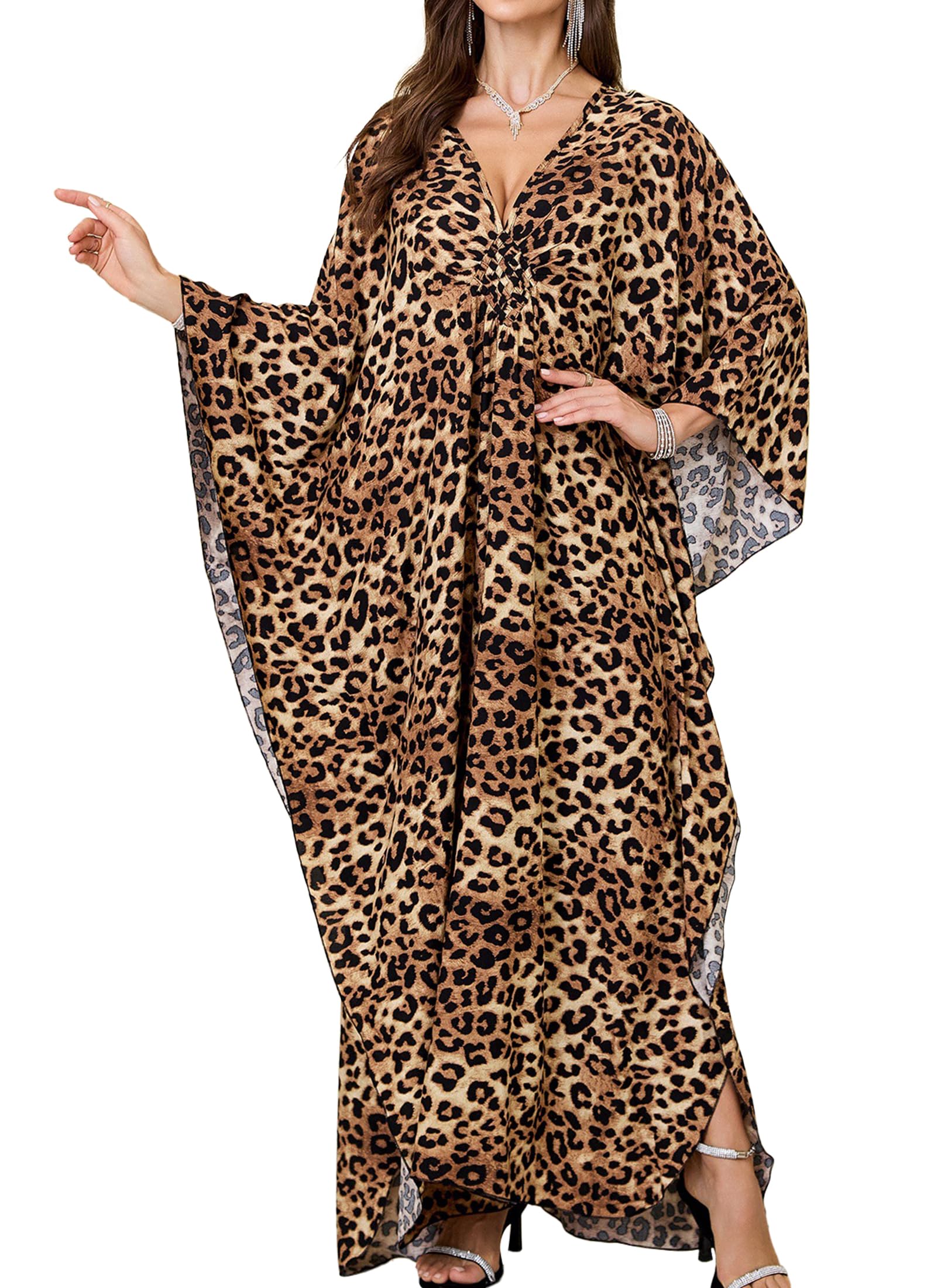 Kaftan Swim Cover Up: Plus size swim cover up for women floral print V-neck batwing sleeves side slits swimsuit for women,Caftans for women loungewear,moomoo nightgowns dresses for women.