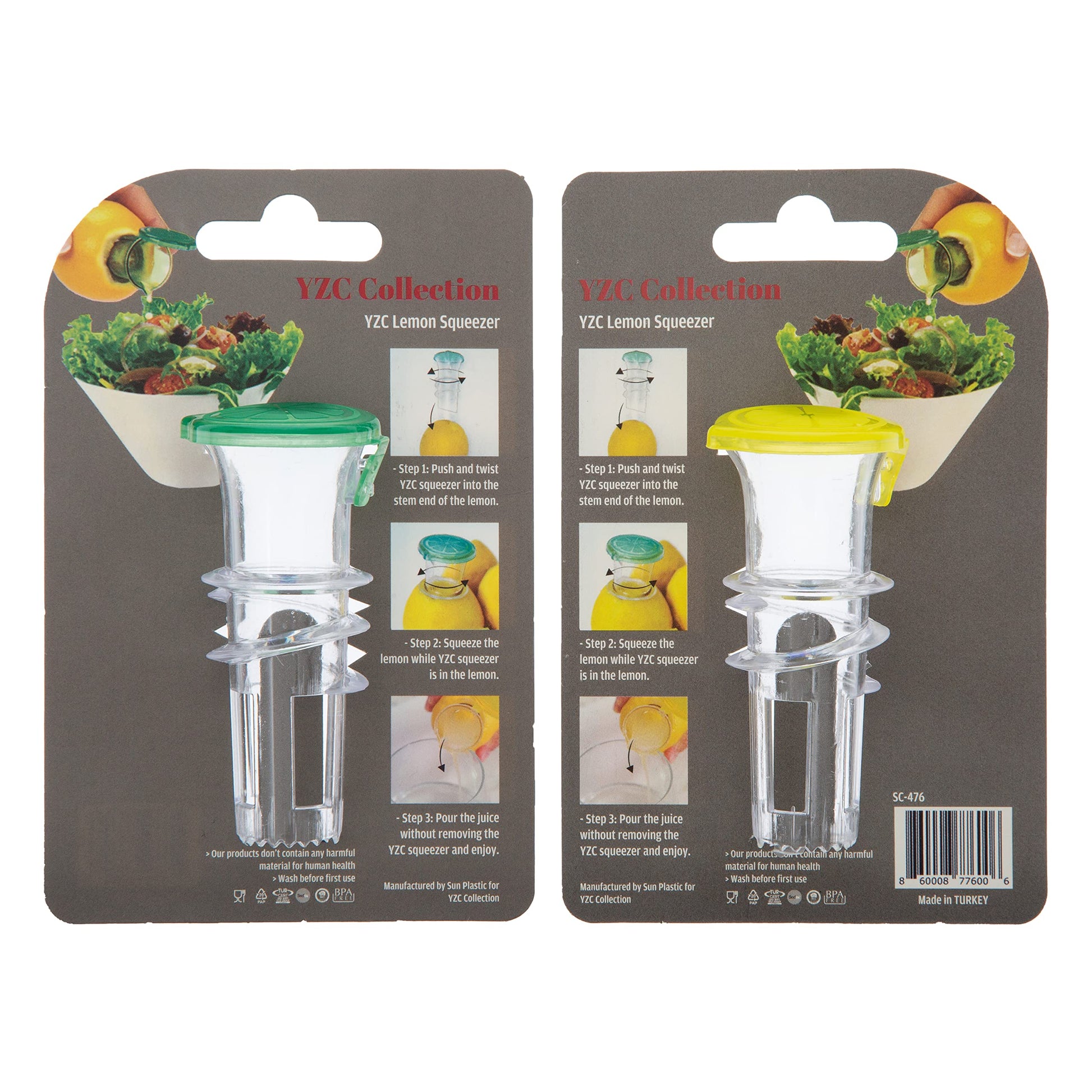 YZC Lemon Squeezer – 2-Pack Lemon-Juicer – BPA-Free Plastic Lime Juicer– Compact Juice Extractor Citrus Press with Lid – Squeeze Lime for Cocktails, Drinks